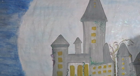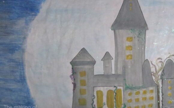 Ich startete mit dem Bild. Ich habe Wasserfarben verwendet und ich bin mit der Wirkung sehr zufrieden. Es ging mit den Wasserfarben sehr gut und im Nachhinein bin ich sehr froh, dass ich Wasserfarben verwendet habe. Das einzige Problem dabei war, dass der Himmel, sowie auch der Wald viel zu hell waren, im Angesicht der Tatsache, dass die Szene, die ich darstellen wollte, bei Nacht ist. Deshalb musste ich am Schluss den Himmel und Wald mit schwarzem Farbstift übermalen, sodass es nun wenigstens ein bisschen dunkler wirkt. Das gab dem Himmel aber auch eine gewisse Struktur, da ich mit dem Farbstift so grossflächig wie möglich arbeitete. Diese Struktur gefällt mir sehr. Ich finde, dass sie das Bild in einer Weise verschönert und interessanter macht. Ich habe für mein Bild also zwei unterschiedliche Techniken verwendet. Auch habe ich für den Schutz-Schild rund um Hogwarts, Glitzerstifte verwendet, um dieses Magische darzustellen. Ich habe zu Hause allerdings nur kleine Glitzerstifte, weswegen ich schliesslich möglichst viel Farbe aus ihnen heraus auf das Bild gepresst habe und die Farbe mit einem Pinsel verteilt habe. Das ist sicherlich nicht die professionellste Technik, und es brauchte auch Unmengen Glitzerstifte, bevor man den Glitzer überhaupt erkennen konnte, aber ich bin mit der Wirkung sehr zufrieden und denke, dass die Wirkung das erzielt, was ich damit aussagen wollte.