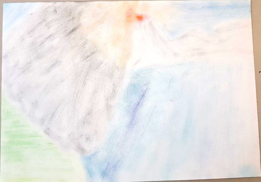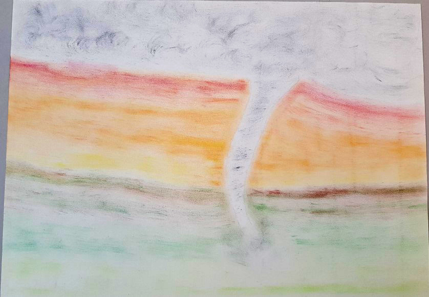 Zuerst habe ich mich mit dem Thema Macht auseinandergesetzt und überlegt, welche Gebiete mich am meisten interessieren. Das erste Thema, das mein Interesse weckte, war die Zeit. Ich sammelte verschiedene Gedanken und kam zum Schluss, dass mir ein anderes Thema besser gefällt, nämlich die Natur. Dabei beschränkte ich mich auf die Naturkatastrophen. Für mich war von Beginn an klar, dass ich gerne etwas zeichnen würde. In meiner Arbeit habe ich diese beiden Sachen also kombiniert.
