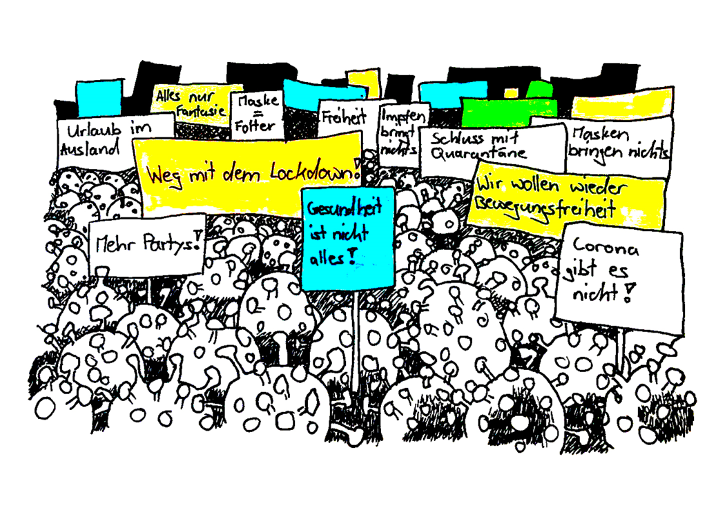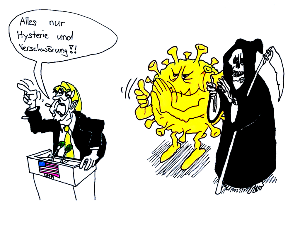 Bei diesen zwei Karikaturen habe ich mich auf ein aktuelles Thema konzentriert und zwar Covid-19. Ich denke man kann Covid-19 und Demonstrationen gut zusammen verbinden, weil es Menschen gibt, die unzufrieden sind und die Politiker nicht auf die Bevölkerung hören. Es gibt auch immer noch Politiker, die das Coronavirus abstreiten und das bringt die Menschen nur noch mehr dazu zu demonstrieren.