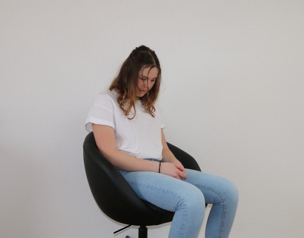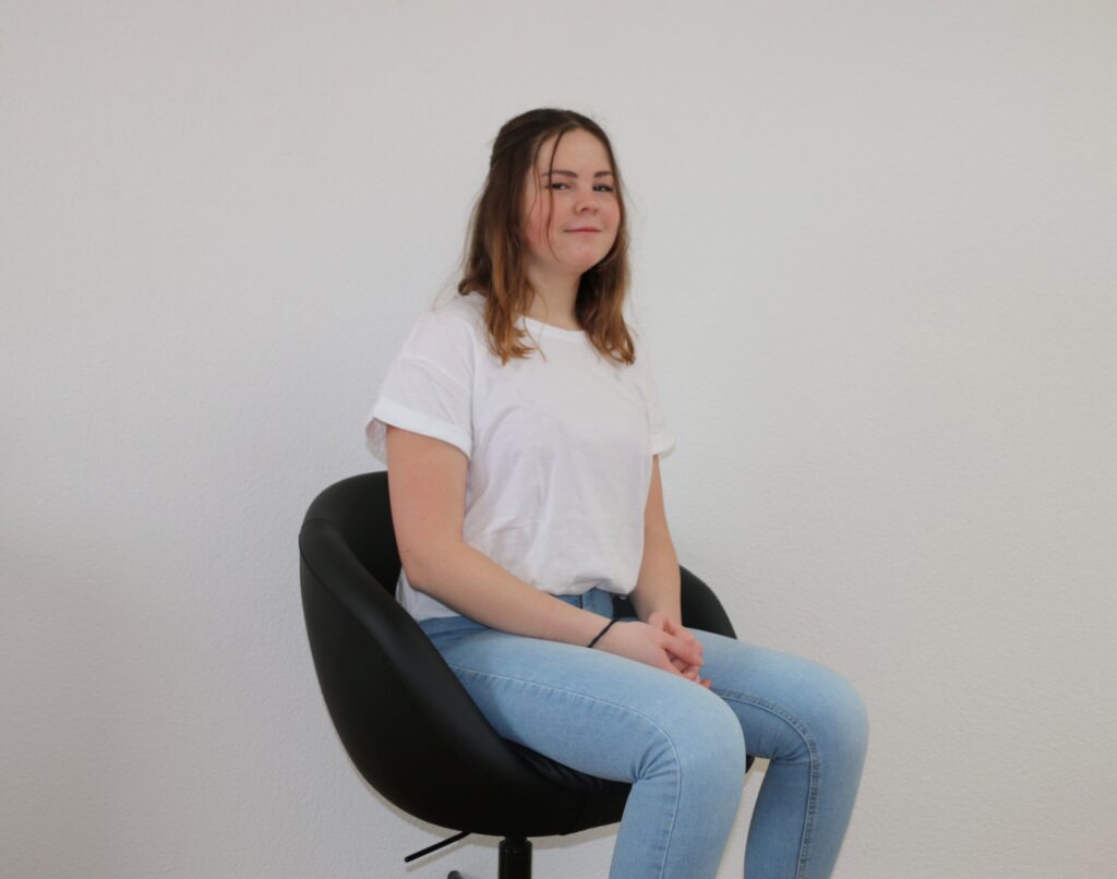 Bei den Bildern brauchte ich mehrere Anläufe. Ich hatte Mühe, gutes Licht für die Bilder zu finden. Es war sehr schwierig, ohne professionelle Geräte oder Hilfen gutes Licht hinzubekommen. Auch bei den Bildern selbst musste ich ausprobieren. Schaut sie besser in die Kamera? Oder doch weg? Ich entschied mich dann für den Blick in die Kamera, weil ich glaube, dass das Ganze so echter wirkt. Die Körperhaltung mit den überkreuzten Beinen musste ich schlussendlich streichen. Es war sehr schwer diese zu fotografieren da ich die Kamera immer gleich positionieren musste und so die Beine nicht komplett auf dem Bild waren.